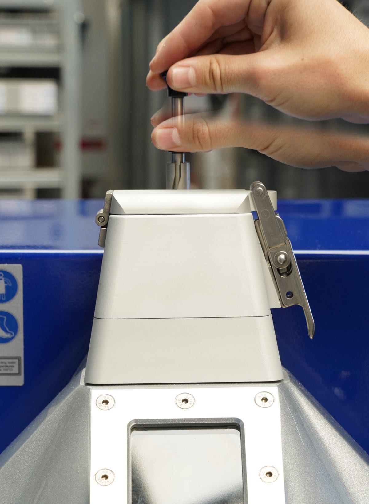 Using the bending unit attached to the bottom drawer, the material can be bent without mechanical force on the die.